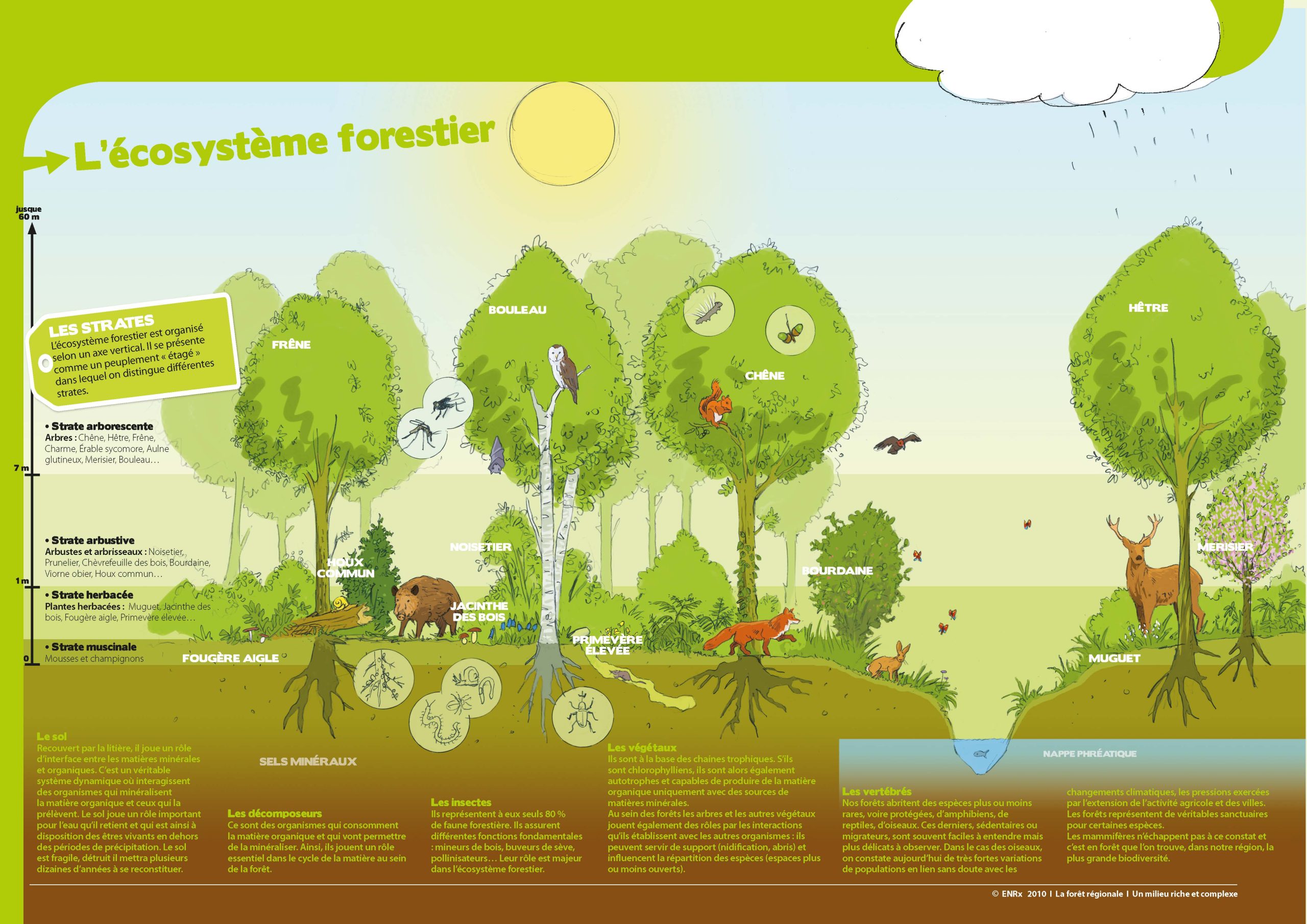 L’écosystème forestier est organisé selon un axe vertical. Il se présente comme un peuplement « étagé » dans lequel on distingue différentes strates.